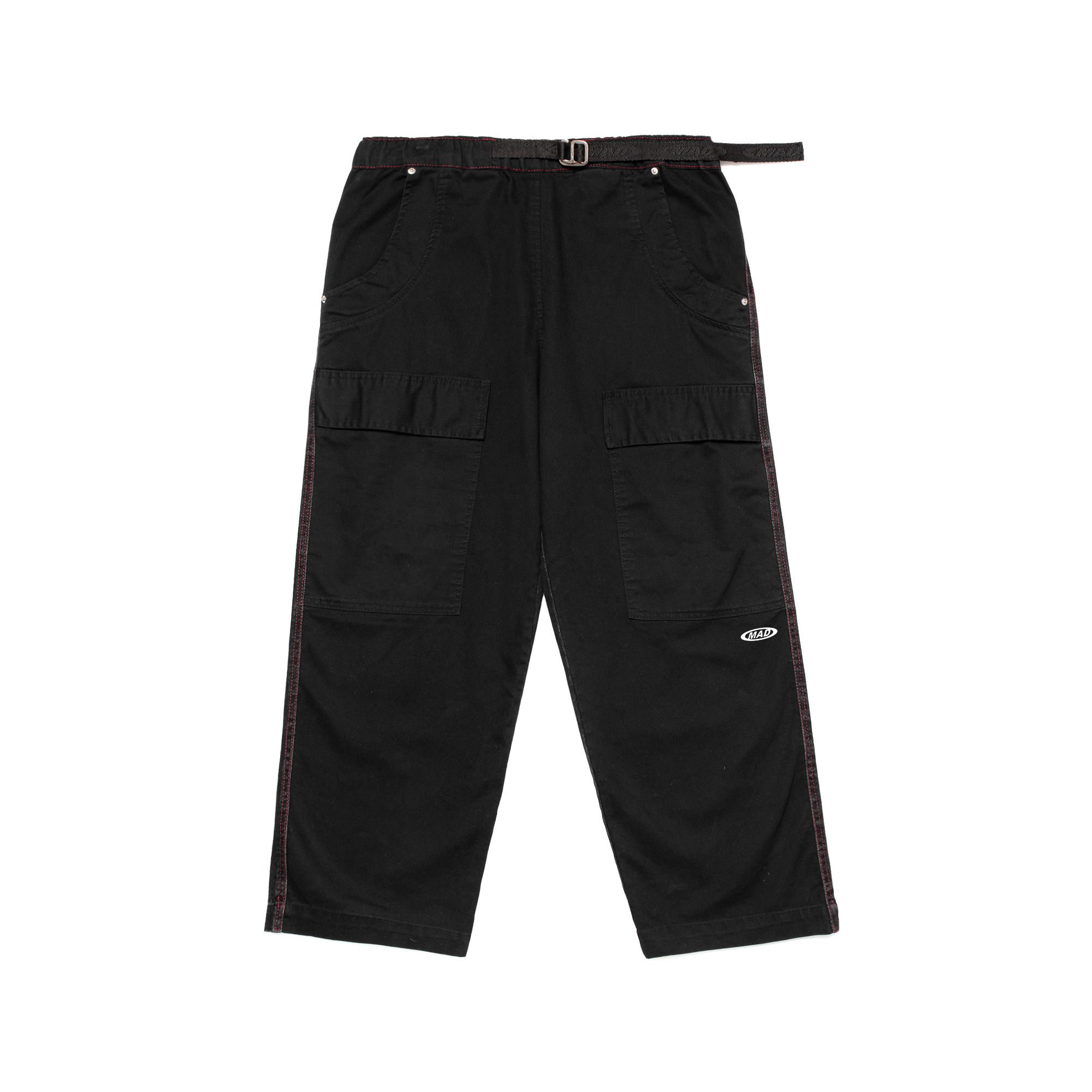 Tecido de brim bruto 100% algodão Fivela personalizada MAD Enlatados Alça personalizada MAD Enlatados Rebite personalizado MAD Enlatados Serigrafia no bolso em silk screen Logo MAD bordado